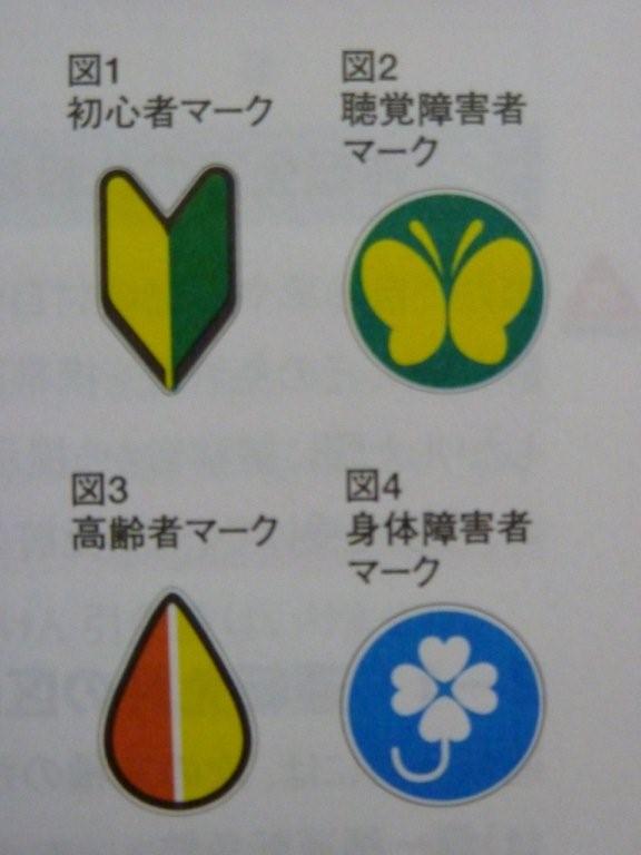 初心者、高齢者マークに続き、聴覚障害者マーク、身体障害者マークが増えていました。