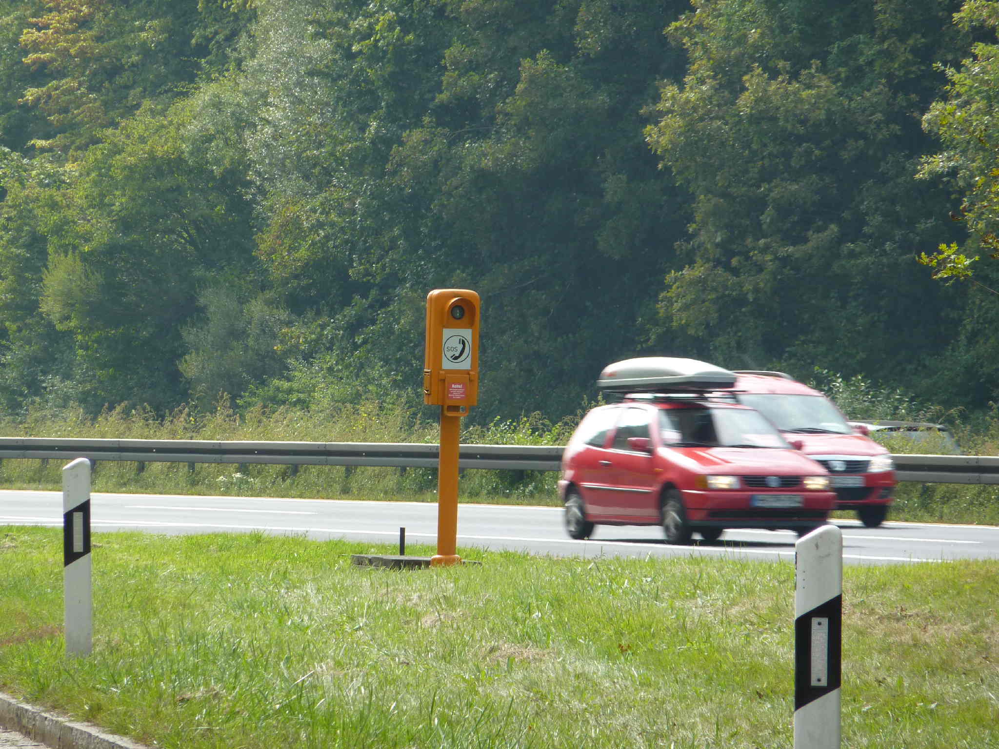 ドイツのアウトバーン(高速道路)で時々みかけるオレンジ色のポール