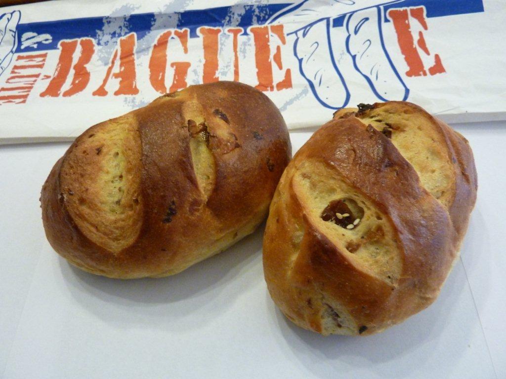 最近凝っているのが上の写真のぶどうパン(1個85セント)