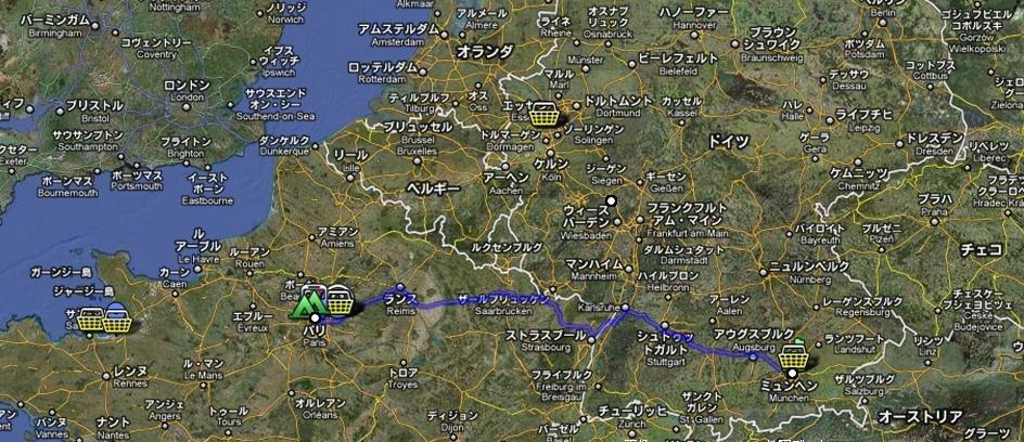 ミュンヘンからフランスを訪問した「フランスへの旅」 (地図↑ クリックで拡大)
