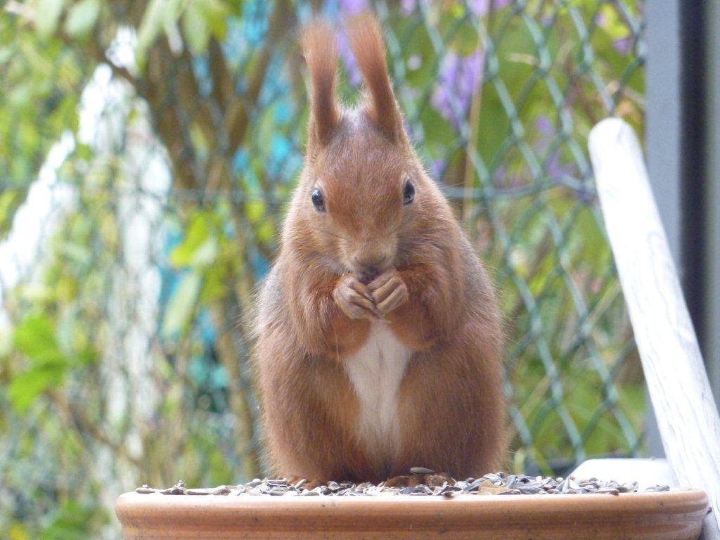 ガラスのドア越し、直線距離で1mほど、凄い食欲でひまわりの種を平らげていきました。