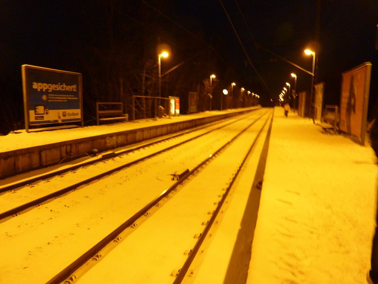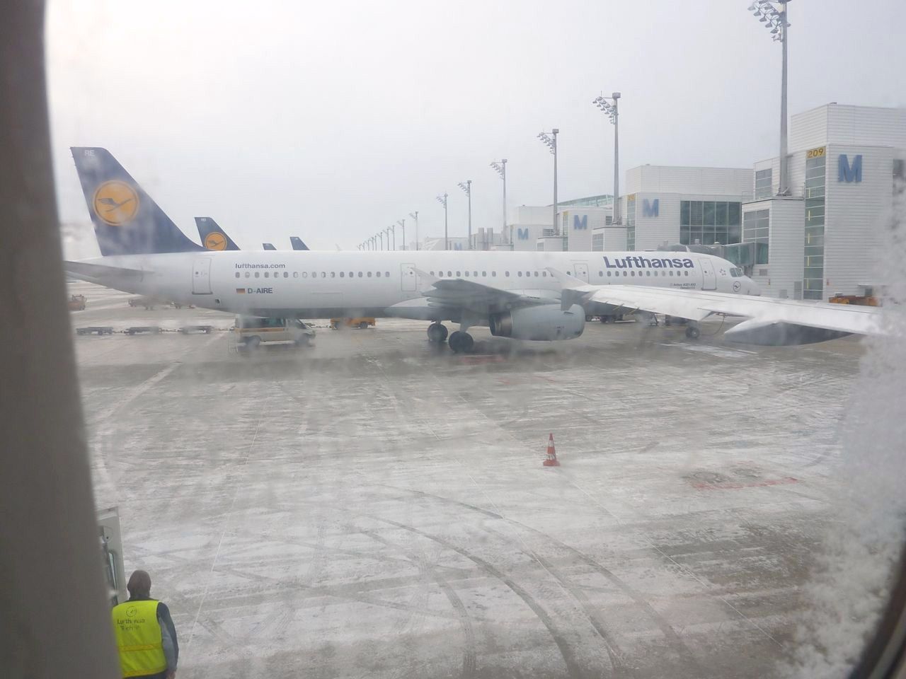 まだ日が明けていないミュンヘンの駅を空港に向け出発、こんな雪では旅行用の