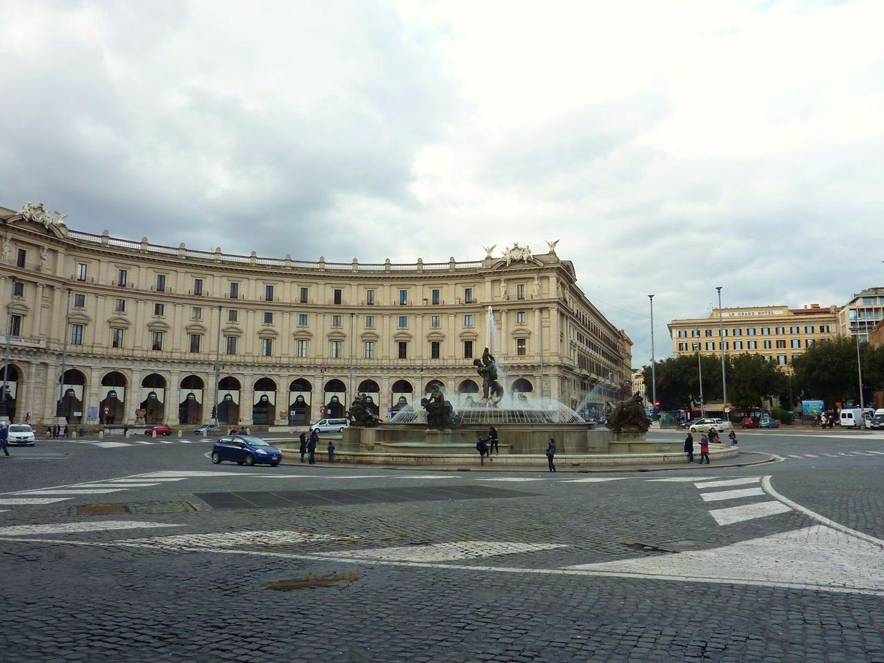 空港から電車に乗り換えローマ市内のテルミニ駅へ、少し歩くとそこはもう「共和国広場」