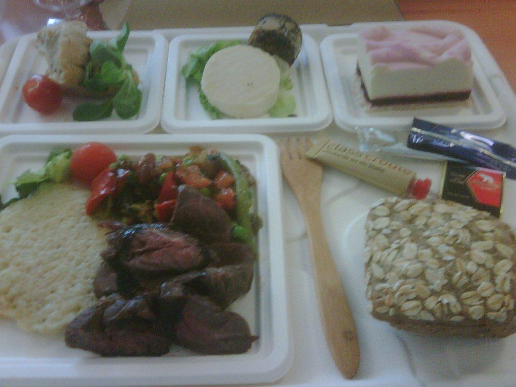 お肉、野菜を炒めたもの、パン、大きなチーズ、ケーキ、チョコもついていました。