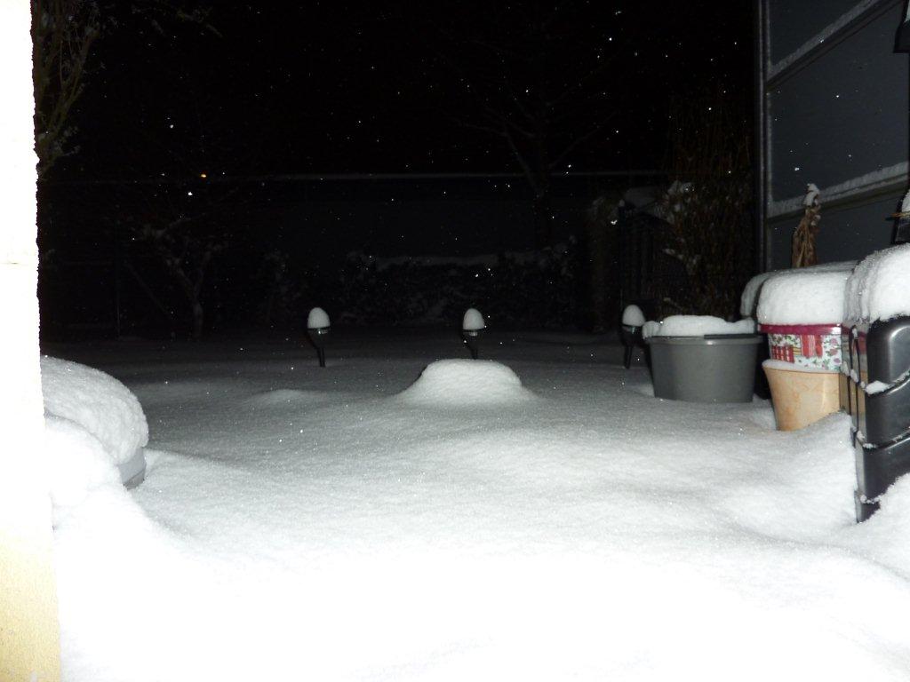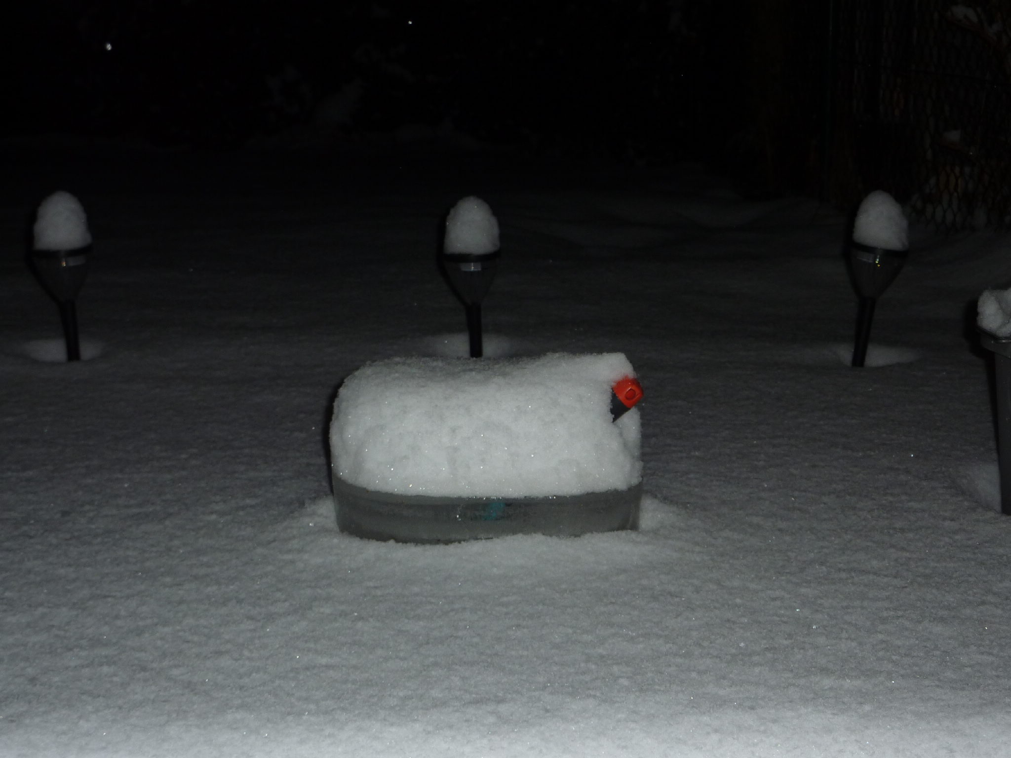 家に戻り庭を見ると上のような状況、かなり積もりました。