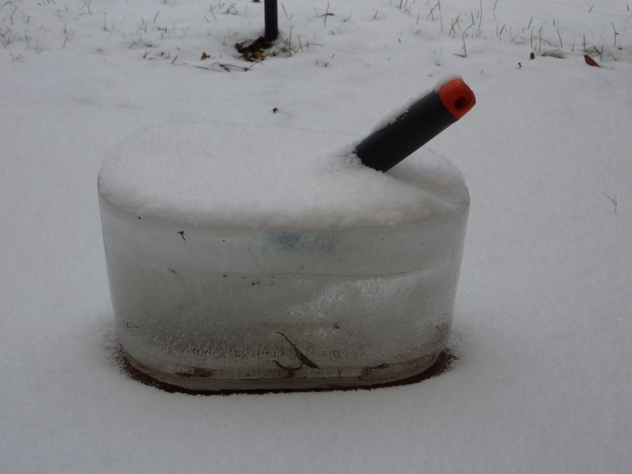 以前バケツに張った高さ20cmの氷を庭に置いていたのですが、